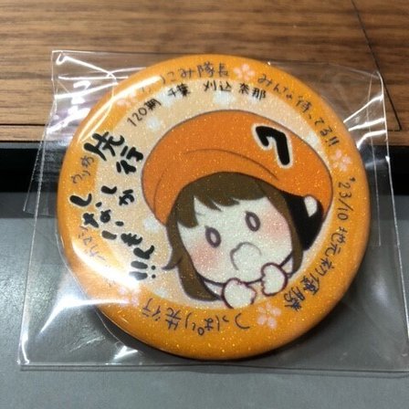 前述しましたが缶バッチが手元に到着。刈込奈那さんの字が小さかったかなと思いましたがそこはご容赦していただきたいと思います💦