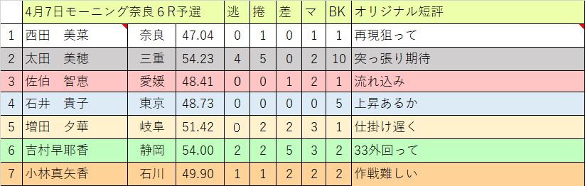 4/7(note無料公開デー) ガールズケイリン予想 「爆穴レース」モーニング奈良6R予選(10:10発走)noteにて公開中です。